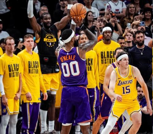 在本場比賽的最后時刻,詹姆斯補籃一度將比分扳平,在比賽最后還剩下22.8秒的時候,雙方戰(zhàn)成110平,太陽利用快速轉(zhuǎn)換,找到大空位的奧尼爾,隨后奧尼爾不負眾望,三分投進,只留給湖人0.9秒的時間,準(zhǔn)絕殺對手。在上一場面對魔術(shù)的比賽中,湖人被小溫德爾-卡特補籃準(zhǔn)絕殺。