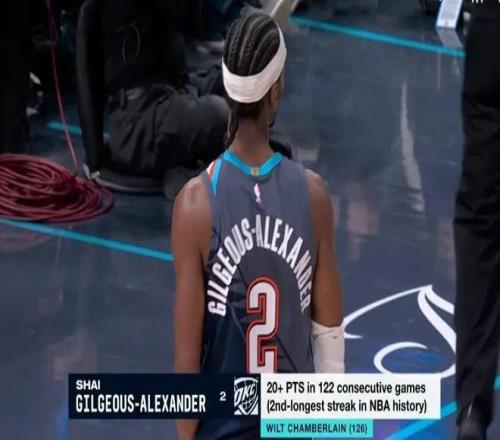連續(xù)122場得分20+,距離第1的張伯倫只剩屈指可數(shù)的4場。