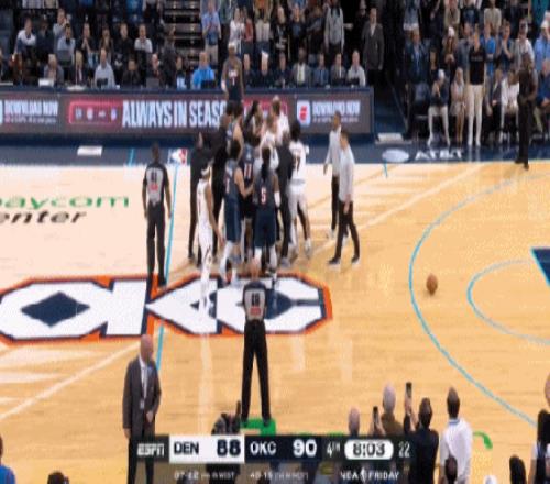 最后一節(jié)的膠著時刻,雷霆90-88領(lǐng)先掘金