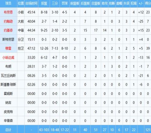 約基奇同樣效率不高,投籃25中9,以36%命中率貢獻(xiàn)23分17板14助三雙數(shù)據(jù)。