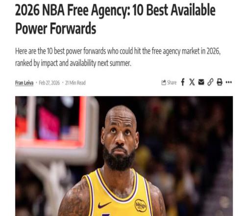 在常規(guī)賽進入沖刺階段,強弱球隊明顯分化之際,美媒《fadeawayworld》提前評選出26年自由市場值得關(guān)注的TOP10前鋒,其中火箭伊森第7名,41歲詹姆斯仍排第一。