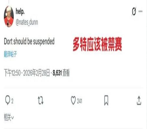 今天雷霆和掘金的比賽中,多特今日故意撞+后腳故意踢人,將約基奇撞倒,雙方引發(fā)沖突,最終多特被判二級惡意直接驅(qū)逐,之前在圣誕大戰(zhàn)的時候,多特也險些搞傷文班,算的上劣跡斑斑,賽后美網(wǎng)友紛紛狂噴多特,場面不可謂不壯觀,隨便挑幾張大家感受一下: