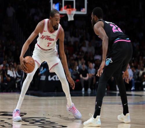 火箭客場(chǎng)不敵熱火,杜蘭特可以說拼盡全力,扛著球隊(duì)。上半場(chǎng)他7投5中,三分3中2、罰球2中2砍下14分3籃板5助攻2蓋帽,正負(fù)值+17。