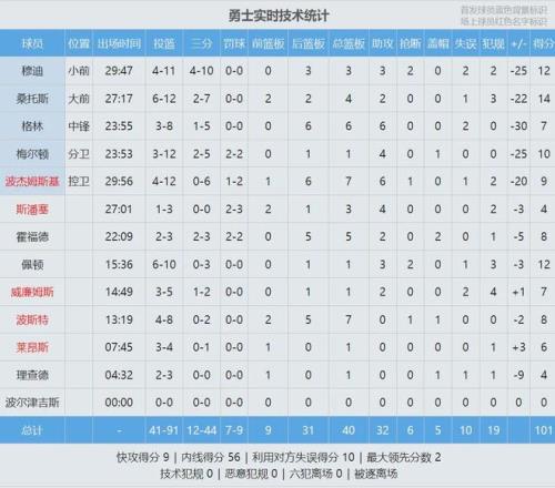 詹姆斯火力全開,第二節(jié)6投5中單節(jié)轟下14分。上半場詹姆斯10投7中,砍下20分4板4助1斷,正負值+20。湖人全隊三分球17中9,勇士只有24中5。小佩頓8投5中砍下10分,得分全隊最高。追夢3中1怒砍2分,正負值-20兩隊最低。