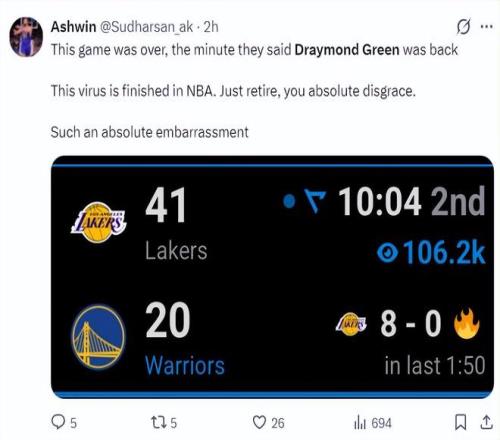 北京時(shí)間3月1日,金州勇士隊(duì)101-129慘敗洛杉磯湖人隊(duì)。這場(chǎng)比賽勇士隊(duì)一度落后湖人隊(duì)32分之多,勇士隊(duì)在主場(chǎng)輸?shù)铰?。德雷蒙?格林復(fù)出球隊(duì)就輸球讓很多勇士媒體破防了,追夢(mèng)在場(chǎng)-30球隊(duì)最差。