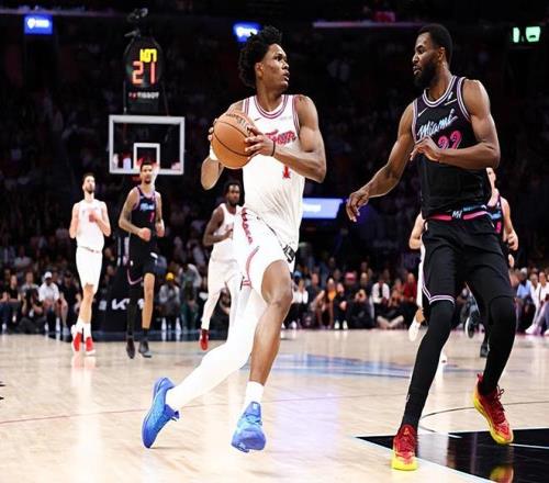 本場比賽中,火箭的先發(fā)控衛(wèi)阿門-湯普森(Amen Thompson)的表現(xiàn)又一次令人大跌眼鏡。阿門全場出場39分01秒,投籃16中7,三分線外1中0,罰球12中6,得到了20分11籃板4助攻1搶斷的兩雙數(shù)據(jù),其中還包括了4個前場籃板,還有4次失誤和3次犯規(guī),正負(fù)值為-18。阿門在進攻端還是展現(xiàn)出了一定的沖擊力和爆發(fā)力,還是得到了不少分?jǐn)?shù),起到了一定的效果,然而畢竟他是球隊的先發(fā)控衛(wèi),他的傳球能力和組織能力依然嚴(yán)重不足,他在外線投籃方面的表現(xiàn)依然很不理想,他對于球隊在進攻空間方面的影響也是有目共睹的。即使阿門在場上的表現(xiàn)不算沒有亮點,但是他對于球隊在進攻端的拖累也是有目共睹的,這樣的表現(xiàn),也在很大程度上導(dǎo)致了火箭的最終失利。