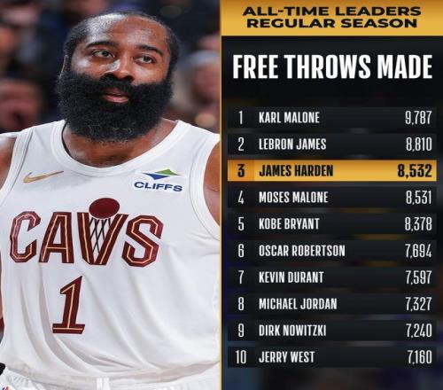 騎士對(duì)陣籃網(wǎng)的比賽,哈登缺席2場(chǎng)之后迎來(lái)復(fù)出,他在下半場(chǎng)也是找回狀態(tài),全場(chǎng)拿到22分9籃板8助攻,幫助球隊(duì)有驚無(wú)險(xiǎn)贏下比賽,終結(jié)了2連敗的頹勢(shì)。而在這場(chǎng)比賽哈登也是迎來(lái)里程碑,生涯總罰球命中數(shù)來(lái)到8535個(gè),超越摩西·馬龍(8531個(gè))升至歷史第3,接下來(lái)將追趕排在第2的詹姆斯(8810個(gè))。