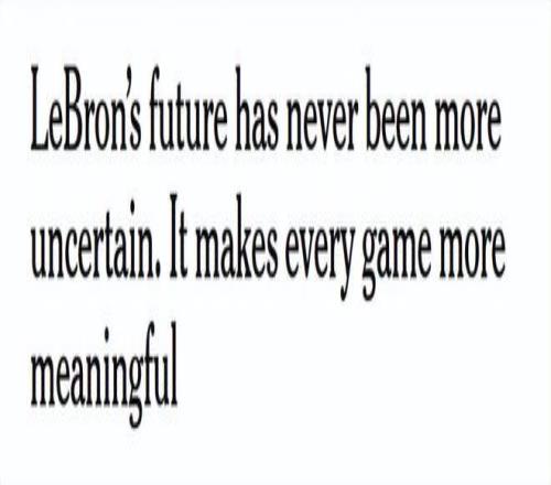詹姆斯似乎很坦然地接受“未來未知”這件事。接下來這幾個(gè)月,完全可能是他NBA生涯的最后時(shí)光;也完全可能是他湖人生涯的終點(diǎn);也完全可能是第24個(gè)賽季的起點(diǎn)——甚至依然在洛杉磯——如果一切突然步入正軌。