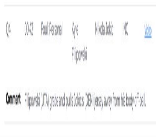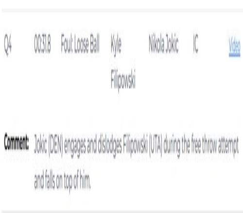 第二次是錯(cuò)判,終場(chǎng)前31.8秒,穆雷執(zhí)行罰球,約基奇與菲利波夫斯基發(fā)生身體接觸并將其推開,隨后壓在對(duì)方身上。裁判當(dāng)時(shí)吹罰了菲利波夫斯基無球爭(zhēng)搶犯規(guī),給了約基奇一次罰球機(jī)會(huì)。但裁判報(bào)告顯示,這個(gè)吹罰是一次錯(cuò)判,本該吹約基奇犯規(guī)。由于約基奇當(dāng)時(shí)已經(jīng)身背5次犯規(guī),如果裁判吹罰正確,他本該被罰下。這次錯(cuò)判爵士吃虧,掘金獲利。