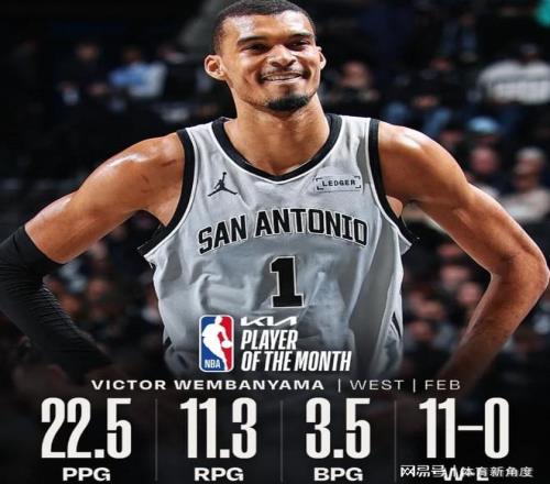 先來說說最佳球員,文班亞馬在單月里場均能砍下22.5分,摘下11.3個(gè)籃板,還能送出3.5次蓋帽,在他的助力下,球隊(duì)取得了11勝0績。這是文班亞馬職業(yè)生涯中首次榮膺月最佳球員,相信有了這“第一次”的鋪墊,未來他必將多次斬獲此項(xiàng)榮譽(yù)。