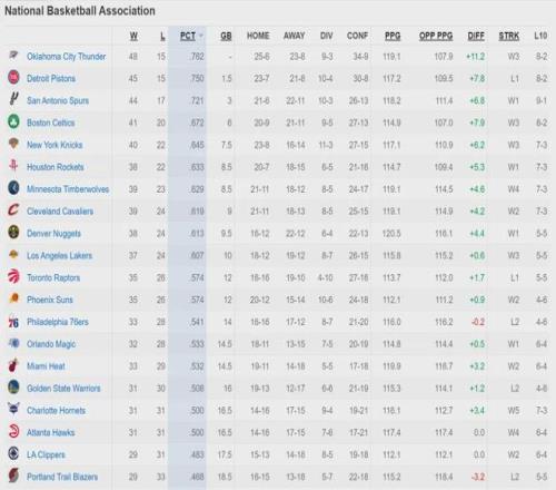 北京時間3月4日,NBA常規(guī)賽:雷霆116-108戰(zhàn)勝公牛,活塞109-113不敵騎士。截至目前,雷霆48勝15負重返聯(lián)盟第一,活塞45勝15負跌至聯(lián)盟第二。雷霆被活塞壓制了20天,現(xiàn)在終于登頂了。馬刺44勝17負,依然位列聯(lián)盟第三。