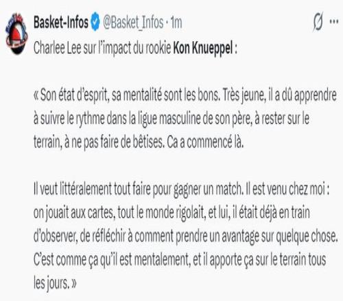 克努佩爾的隊友布蘭登-米勒談到弗拉格與克努佩爾的最佳新秀之爭,他說道:我從第一天開始就說克努佩爾就是最佳新秀,我不想再說一遍。