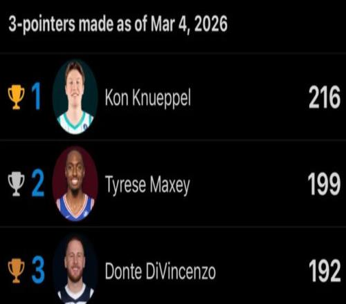 2.此役后本賽季也只有克努佩爾命中超過200個三分球;