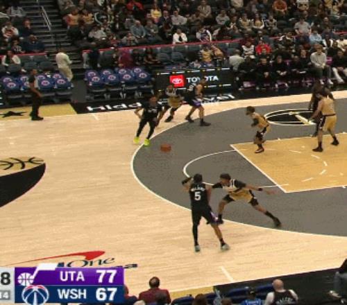 反觀華盛頓奇才這邊,場面就顯得有些慘不忍睹了。本場比賽本來有著極大的噱頭——這是“吹楊”特雷·楊自打被亞特蘭大老鷹交易至華盛頓以來的重磅首秀。結果呢?新東家的首秀之夜直接被爵士的“新秀合唱團”給徹底攪黃了。