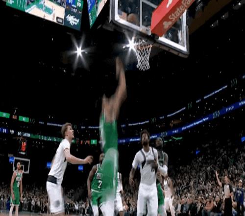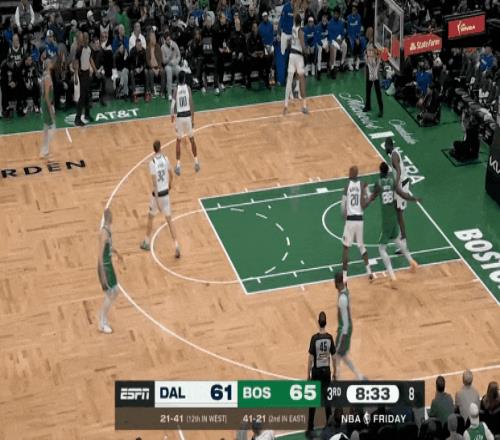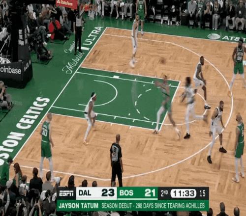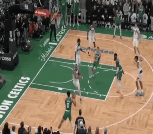 塔圖姆第三節(jié)開(kāi)始,頂著防守突破打板了;低重心突破強(qiáng)拔中投了,左底角被鎖死后強(qiáng)拔三分了——前6投不中后是5連中。杰倫前6投1中后,11投8中。那一波浪潮,春風(fēng)又綠查爾斯河岸。
