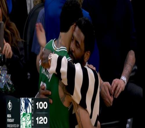 賽后,塔圖姆和歐文動情相擁,科比門徒之間的惺惺相惜