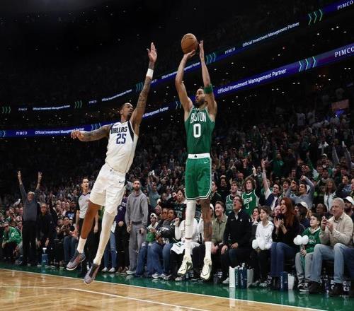 大傷298天回歸復(fù)出后,塔圖姆開(kāi)局狀態(tài)明顯不佳,前6次出手全部偏出,但隨著比賽的進(jìn)行,塔圖姆快速找到節(jié)奏,后10次出手命中6球,一度連中5球。