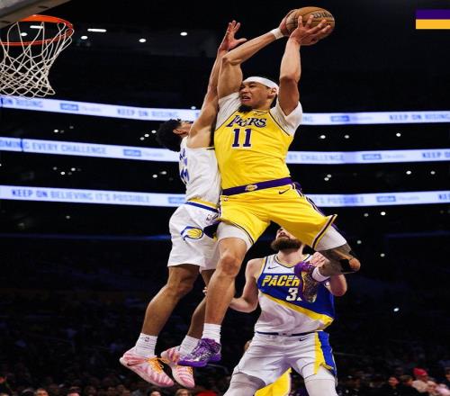 湖人隊(duì)的勒布朗因?yàn)橹鈧毕?,艾頓也因傷缺陣,八村塁和海耶斯一同首發(fā)。開(kāi)場(chǎng)后兩隊(duì)交替領(lǐng)跑,西亞卡姆率隊(duì)連拿4分,步行者隊(duì)以13-8領(lǐng)先。東契奇連得5分追平,西亞卡姆上籃得手帶領(lǐng)球隊(duì)又是一波6-1的小高潮,他們?cè)俅卫_(kāi)領(lǐng)跑。東契奇隨后開(kāi)啟攻擊模式,命中3個(gè)三分球,一人獨(dú)取13分,肯納德也貢獻(xiàn)5分,他們率隊(duì)還擊21-8的攻擊波結(jié)束首節(jié),湖人隊(duì)以35-27領(lǐng)先。東契奇單節(jié)9投7中,三分球5中5,獨(dú)得22分、4個(gè)籃板和3次助攻。