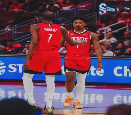 4號(hào)秀阿門-湯普森為火箭首發(fā)出戰(zhàn)60場,場均出戰(zhàn)37.1分鐘,得到17.6分7.7籃板5.3助攻1.6搶斷0.6蓋帽2.5失誤,三項(xiàng)命中率:51.8%,20.6%,76.7%。場均搶斷聯(lián)盟第7,場均正負(fù)值+4.9聯(lián)盟第21,在火箭隊(duì)內(nèi)僅次于杜蘭特。