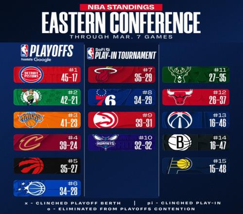 從今日起,老獅將每日更新排名變化匯總,讓吧友們第一時(shí)間了解各自主隊(duì)的季后賽/附加賽前景: