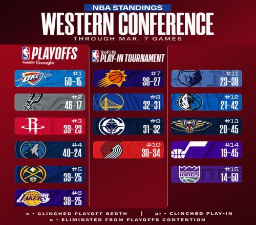 今日排名變化匯總:雷霆50勝火箭升至西部第376人連跌2位到第8