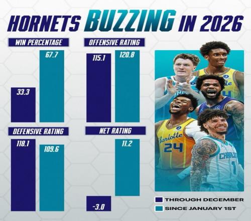 黃蜂進(jìn)入2026后判若兩隊!勝率翻倍凈效率從3變+11.2!