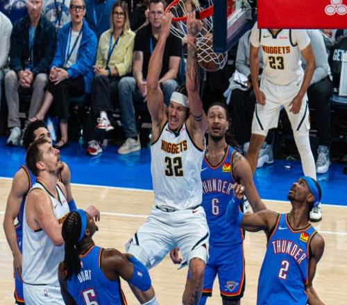 開(kāi)場(chǎng)約基奇就連續(xù)拋投,杰林從對(duì)抗到身高,確實(shí)防不了。亞歷山大和杰林內(nèi)外開(kāi)花,戈登內(nèi)突外投,雷霆完全攔不住,打了4分鐘,戈登獨(dú)砍13分,打停雷霆!暫停回來(lái)穆雷跳投續(xù)上火力,戈登連續(xù)造殺傷,雷霆陣地戰(zhàn)防守太吃力了。掘金最多拉開(kāi)13分分差,多特三分止血后,后半段亞歷山大帶著替補(bǔ)席的米切爾和肯威開(kāi)始反撲。節(jié)末杰林和小哈達(dá)威對(duì)轟三分球,米切爾連續(xù)單打,第一節(jié)打完,掘金40-37雷霆。進(jìn)入第二節(jié),多特三分追平后,瓦蘭勾手打進(jìn),此后伊塞亞喬和米切爾下三分雨,掘金替補(bǔ)一直輸分。