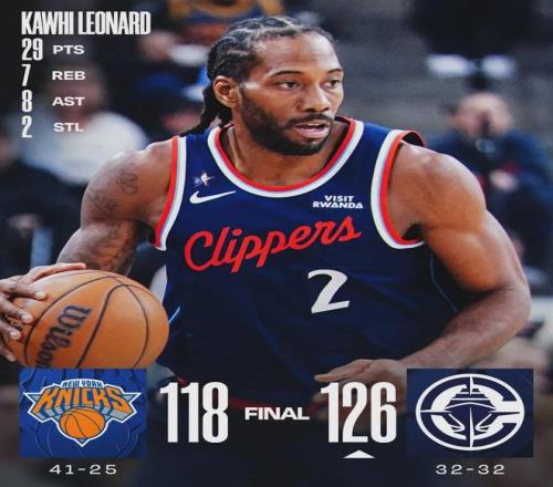 北京時間3月10日,NBA常規(guī)賽:快船主場126-118戰(zhàn)勝尼克斯;勇士客場116-119不敵爵士。快船和勇士都是32勝32負,快船依靠交手優(yōu)勢(本賽季對勇士2勝1負),升至西部第八,勇士跌至第九。不僅如此,快船勝率終于達到五成!