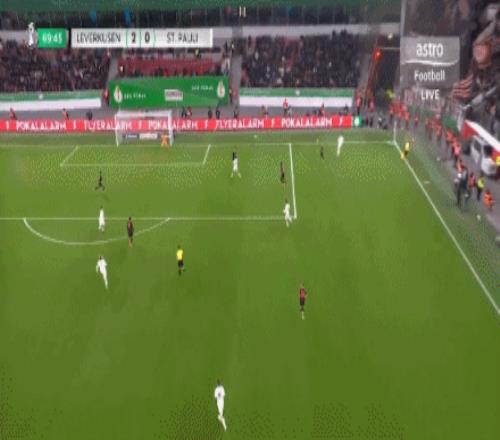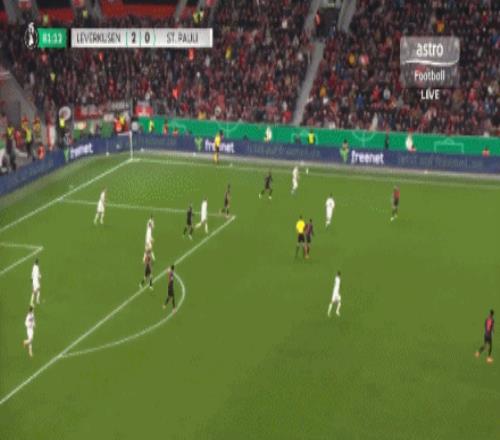 第63分鐘,擴大比分!??藫岦c低射破門,勒沃庫森2-0圣保利