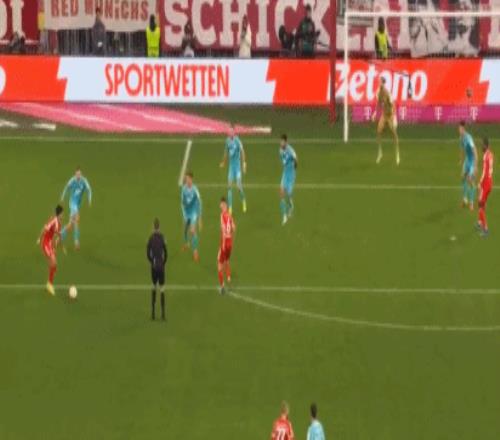 第62分鐘,基米希長傳右路,奧利塞下底倒三角回敲,路易斯-迪亞斯門前包抄推射入網,拜仁繼續(xù)擴大戰(zhàn)果,4-1!
