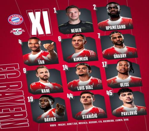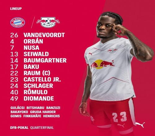 北京時間2月12日凌晨3點(diǎn)45分,德國杯1/4決賽展開一場焦點(diǎn)戰(zhàn)役,拜仁對陣萊比錫。賽前,雙方公布首發(fā)陣容。