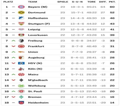 不來(lái)梅本輪做客1比2輸給圣保利,兩隊(duì)在積分榜上互換位置,不來(lái)梅自本賽季第1輪后首次陷入直降區(qū),綠白軍團(tuán)連續(xù)13輪不勝,創(chuàng)造了球隊(duì)單賽季之內(nèi)的最長(zhǎng)不勝紀(jì)錄。在重壓之下,本賽季整體表現(xiàn)不錯(cuò)的德國(guó)U21國(guó)門(mén)巴克豪斯也出現(xiàn)了失誤,球隊(duì)自身進(jìn)攻仍是雷聲大雨點(diǎn)小,在混戰(zhàn)中依靠替補(bǔ)前鋒米洛舍維奇打入一球。