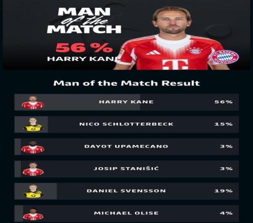 凱恩當(dāng)選全場(chǎng)最佳,恩梅查承認(rèn)拜仁掌控比賽