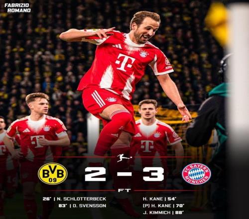 全場比賽結(jié)束,比分定格在2-3,拜仁客場逆轉(zhuǎn)雙殺多特,豪取各項(xiàng)賽事5連勝!