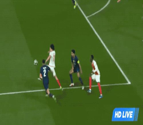 第50分鐘,巴黎獲得前場右路的任意球,內(nèi)維斯的頭球,居然被庫恩擋了出去。