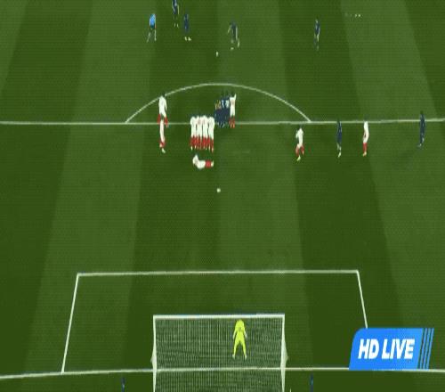 第21分鐘,克瓦拉茲赫利亞橫向擺脫被放倒,裁判判罰任意球,克瓦拉茲赫利亞親自操刀,皮球繞過人墻打高。