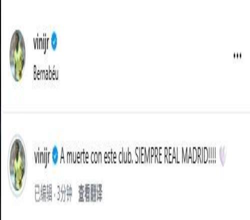 賽后,維尼修斯在社交媒體上發(fā)文表示:“至死忠于這家俱樂部,永遠都是皇家馬德里?。?!”