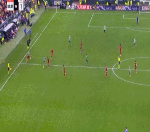 第20分鐘,先拔頭籌,里奧哈迎球低射破門(mén),瓦倫西亞1-0