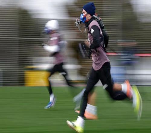 “面罩用于通過心電圖和氣體分析(如球員呼出的二氧化碳)來了解球員的呼吸能力。這些面罩的好處在于它們是便攜的,可以在任何地方進行測試,比如在球場上,進行短時間的小比賽?!?/p>
