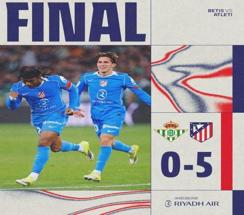 北京時間2月6日,在國王杯1/4決賽中,馬德里競技客場5-0大勝皇家貝蒂斯順利殺進四強,新援盧克曼首秀貢獻一傳一射,此外漢茨科、朱利亞諾-西蒙尼、格列茲曼以及蒂亞戈-阿爾馬達也都有進球入賬。