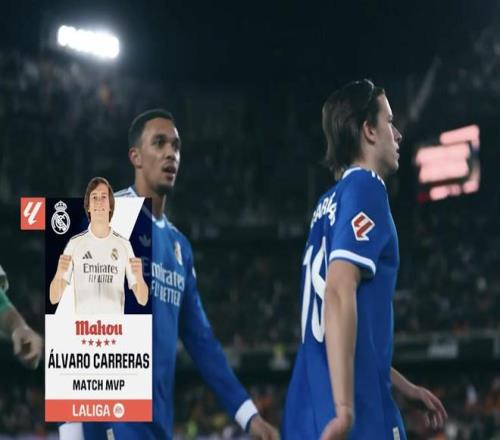 西甲第23輪,皇家馬德里客場(chǎng)2-0擊敗瓦倫西亞,此役打入一球的皇馬后衛(wèi)卡雷拉斯當(dāng)選西甲官方全場(chǎng)最佳球員。