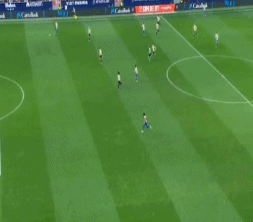 開場僅4分鐘,格列茲曼禁區(qū)前沿送出手術(shù)刀直傳,朱利亞諾-西蒙尼插上單刀推射,霍安-加西亞出擊伸腿封堵,巴薩逃過一劫。