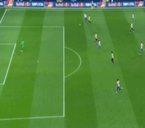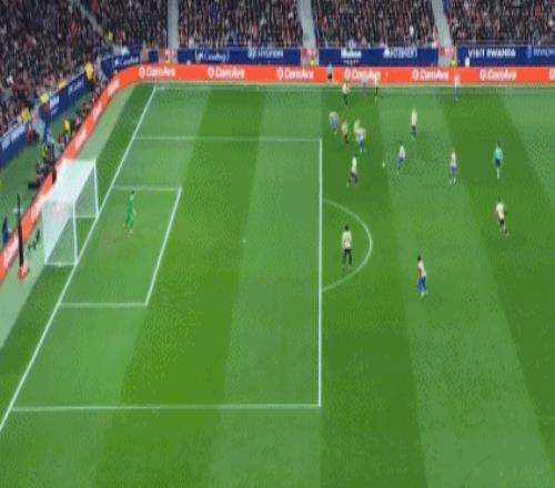 第30分鐘,阿爾瓦雷斯直傳策動(dòng)反擊,莫利納右路傳中,格列茲曼兜射打高,巴薩門前風(fēng)聲鶴唳。