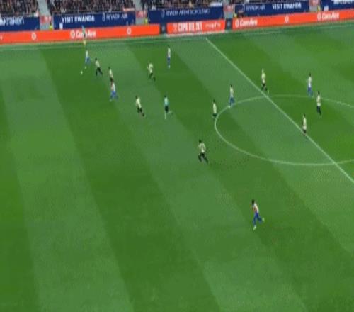 第24分鐘,巴薩的高位防線再次被打穿,朱利亞諾-西蒙尼右路推進(jìn),禁區(qū)內(nèi)無私橫傳,阿爾瓦雷斯迎球推射,孔德在門線前解圍。