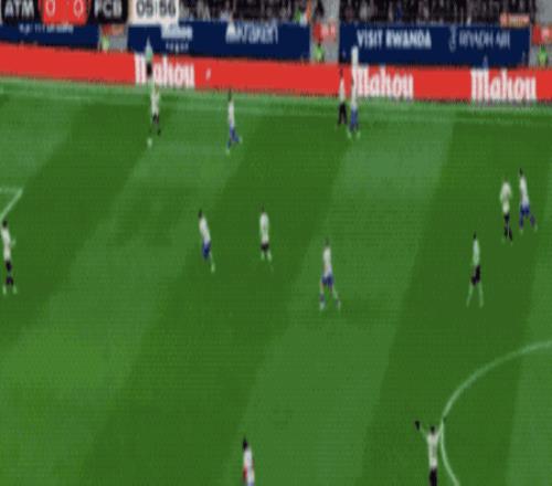 第43分鐘,馬競的進攻又是從右路開始,小西蒙尼的傳球稍稍有些大,盧克曼包抄沒能碰到皮球,相當可惜。