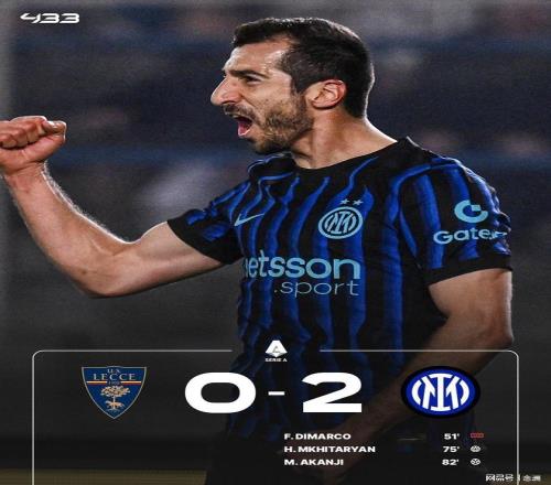 意甲第26輪,國米客場2-0戰(zhàn)勝萊切,取得聯(lián)賽7連勝+14輪不敗,先賽領先第2名AC米蘭10分。恩里克遭門線解圍,迪馬爾科進球無效后送角球助攻,姆希塔良?替補破門,阿坎吉頭球擴大比分。