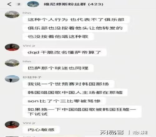 據(jù)網(wǎng)友爆料,在國內(nèi)的一個423人的維尼修斯粉絲群里面,某球迷表示:“我至今都不知道這些人叫喚什么,發(fā)個圖片咋了?赫伊森說啥了?那個人不是中國人?趕緊把他開除國籍吧?!?/p>