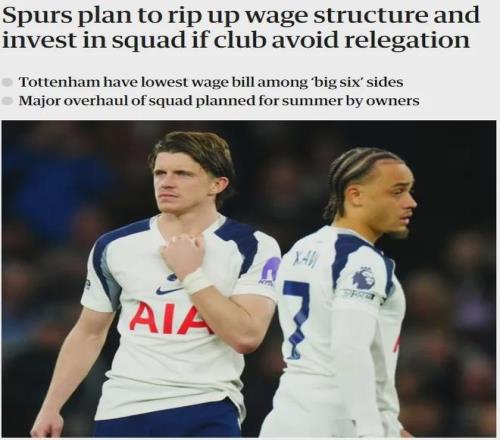 衛(wèi)報記者MH消息,熱刺老板準備打破俱樂部僵化的薪資結(jié)構(gòu),假如本賽季能避免降級,那么他們將在夏天來臨之前付諸行動。