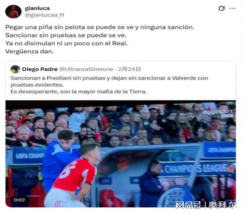 周三,歐足聯(lián)宣布駁回本菲卡的上訴,維持對普雷斯蒂安尼臨時禁賽1場的處罰。普雷斯蒂安尼在社交媒體炮轟歐足聯(lián),“毫不掩飾對皇馬的偏袒”。