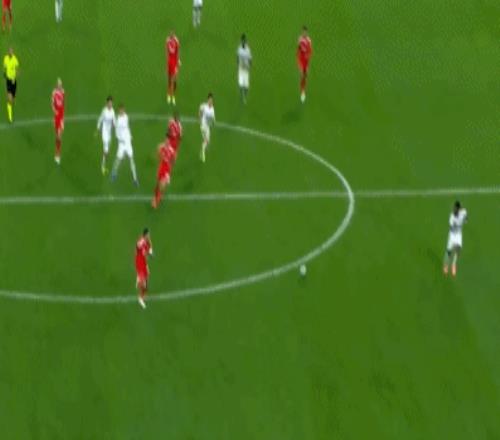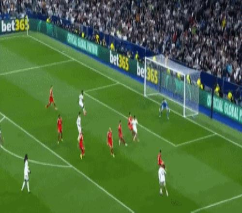 第16分鐘,居萊爾做球,巴爾韋德右路倒三角傳中,楚阿梅尼迎球勁射,特魯賓撲了一下依舊入網(wǎng),皇馬迅速扳平比分,1-1!